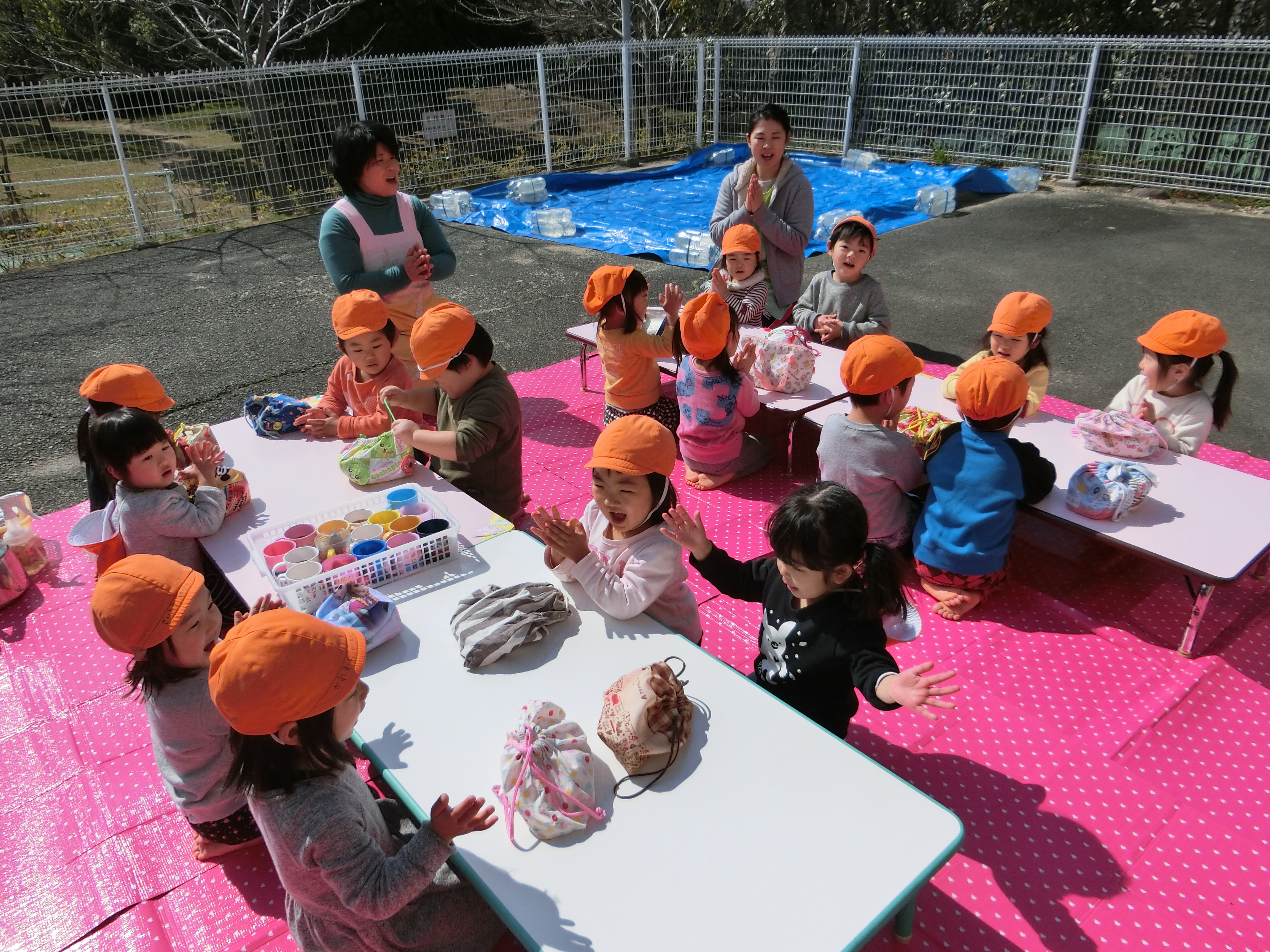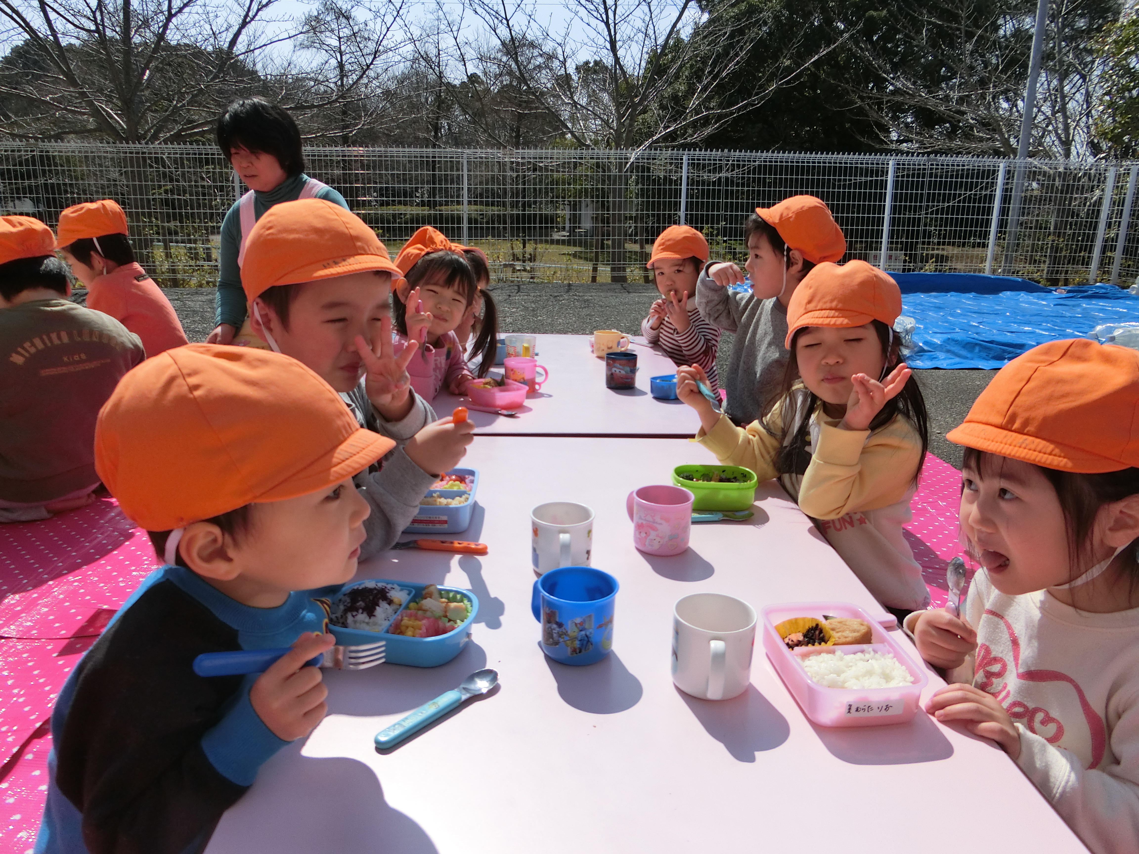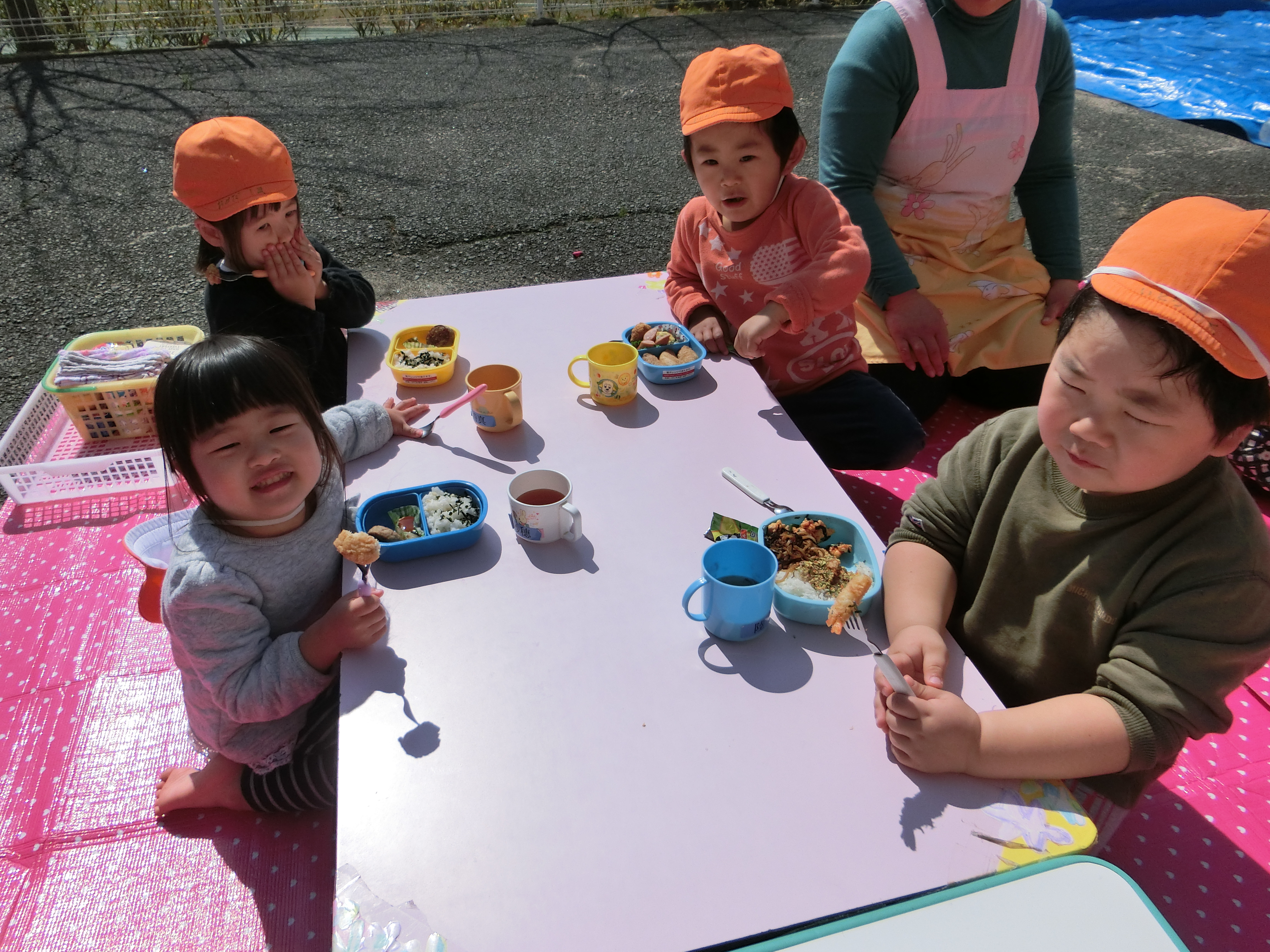 天気がよく、とても暖かかったのでお庭でお弁当を食べました。