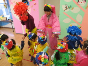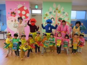 豆まきダンスを踊るといよいよ鬼の登場です。