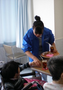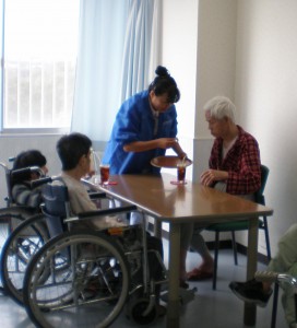 毎週水曜日にも〝村のコーヒー屋さん〟を開いておりますが、加えて認知症リハビリプロジェクトの活動として、それぞれのフロアにもお邪魔する移動喫茶を始めました。