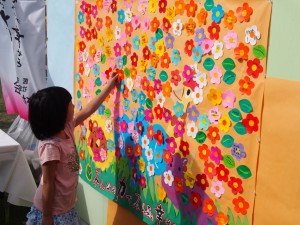 そして参加者の方の夢を貼り付けてみんなで1枚の絵を完成させる「夢の貼り絵」には約400人の方が参加してくださり、完成した「夢の貼り絵」は参加者の方の夢でいっぱいになりました。(福祉村病院 清田)