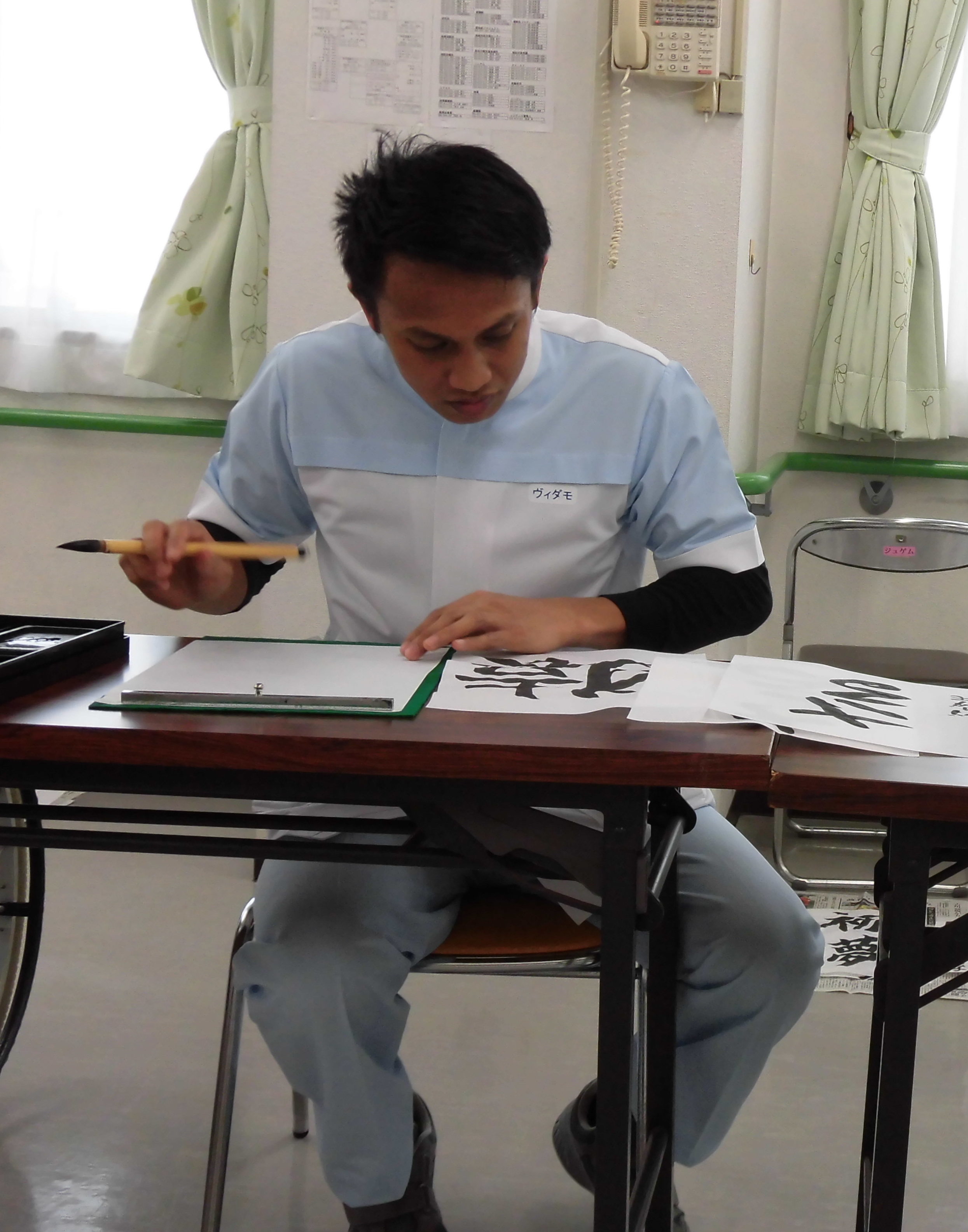 EPA介護福祉士候補生の皆さんもはじめて書道を行い、日本文化に触れてもらう良い機会となりました。(ジュゲム平松)