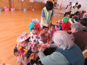 クリスマスの衣装を着て、嬉しそうな子どもたち。