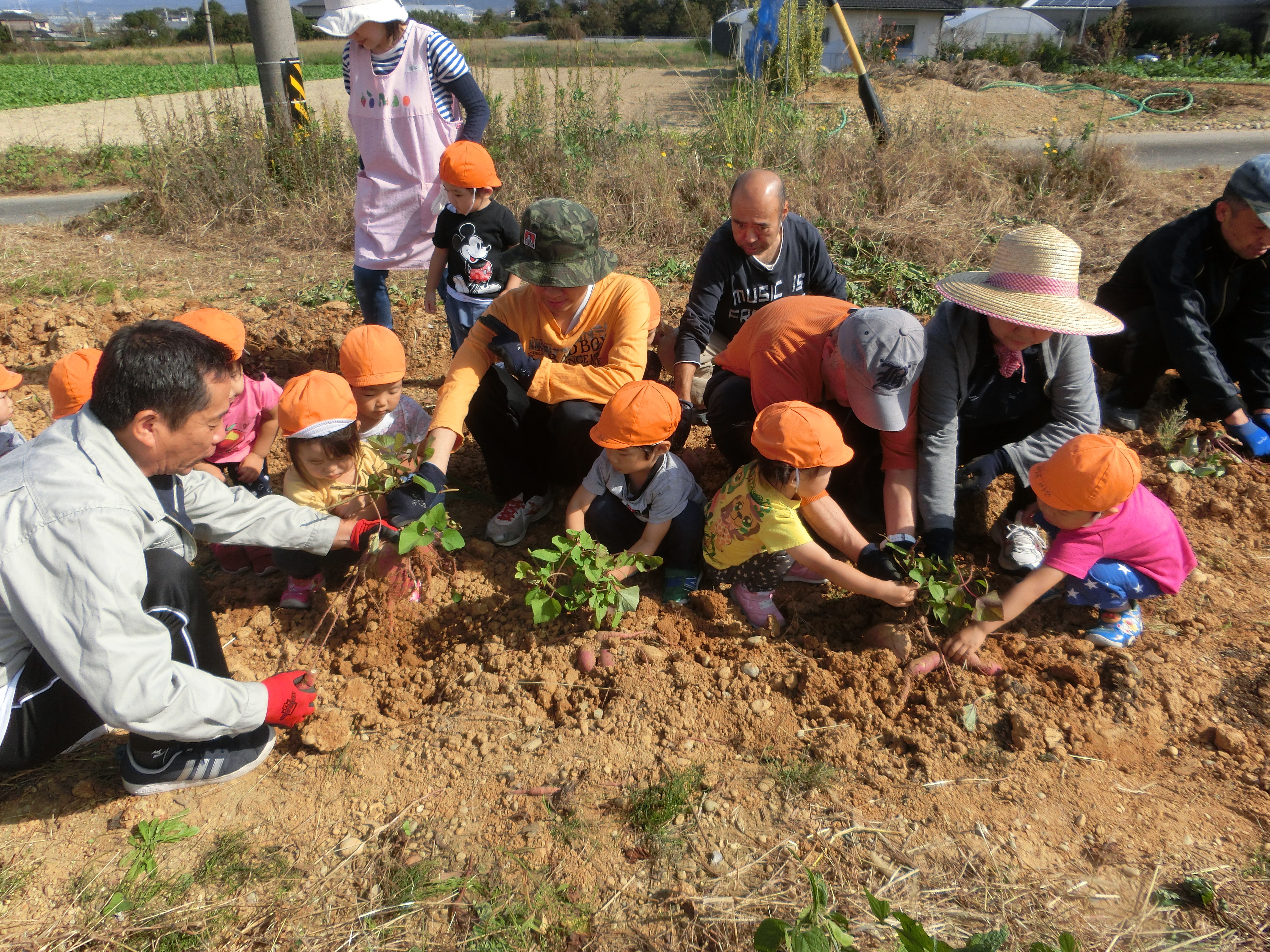 子どもたちは、明日香のみなさんと一緒に芋ほりをし