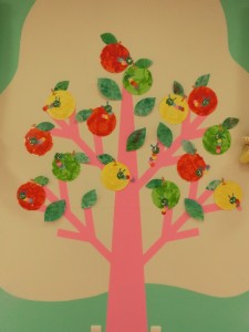 だんだんと涼しくなり、青組のお部屋も秋の壁面になりました。