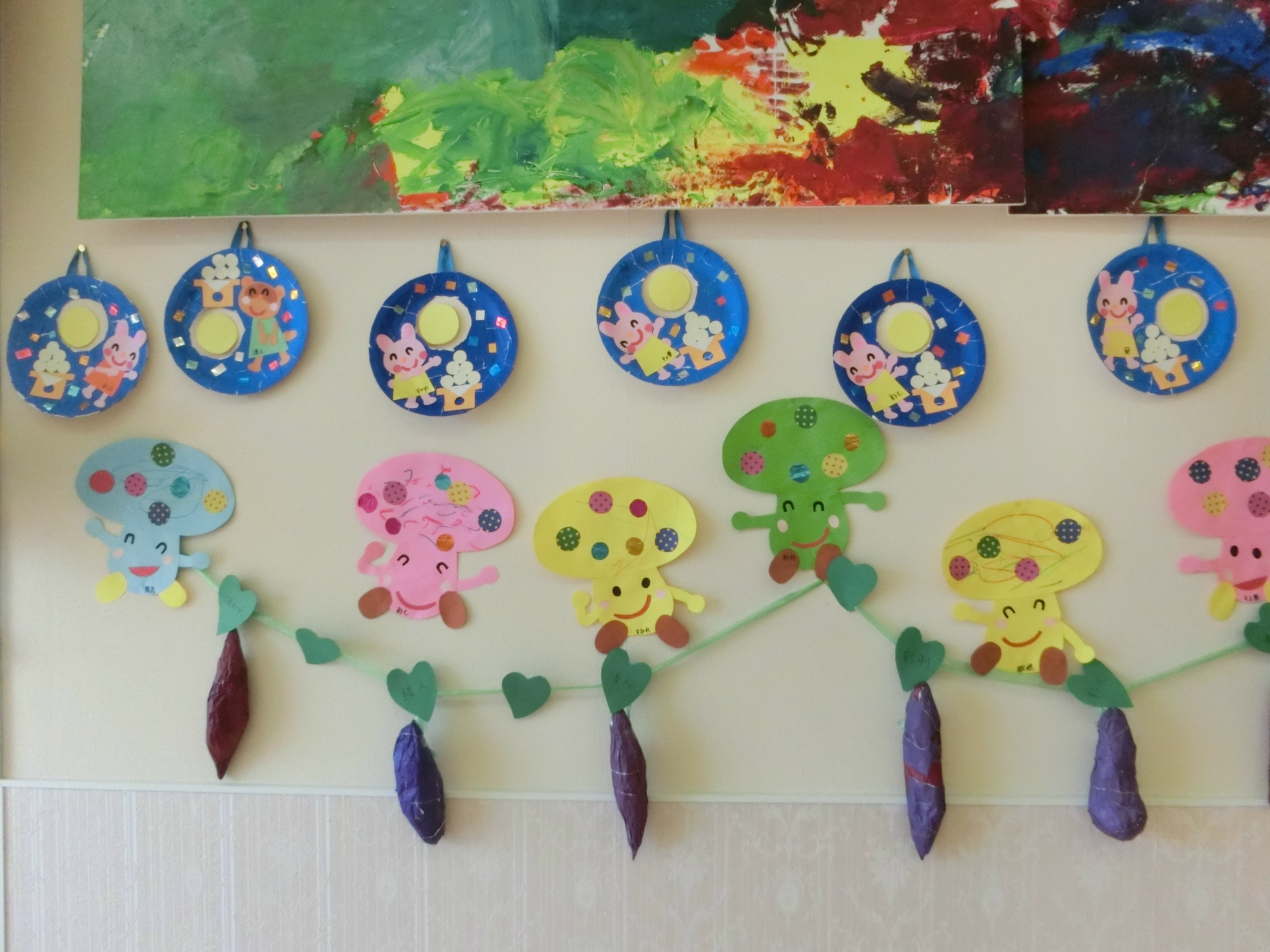 夏も過ぎ、秋の壁面が飾られています。