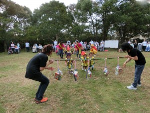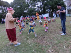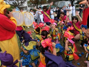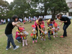 病棟との対抗玉入れでは、保育園が勝つと子どもたちは