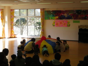 青組は、パラバルーンとオペレッタ 「 3匹の子ブタ 」 を