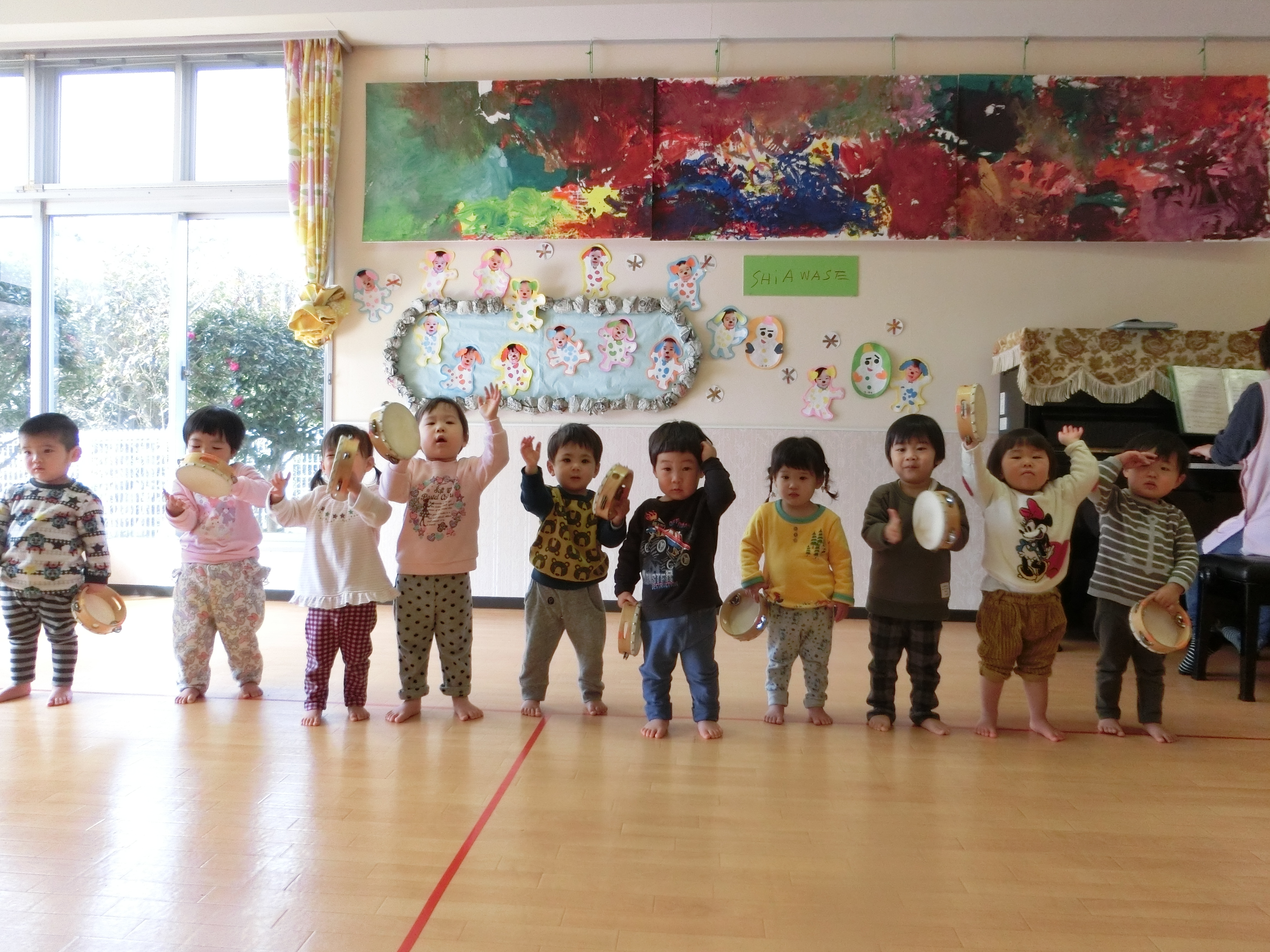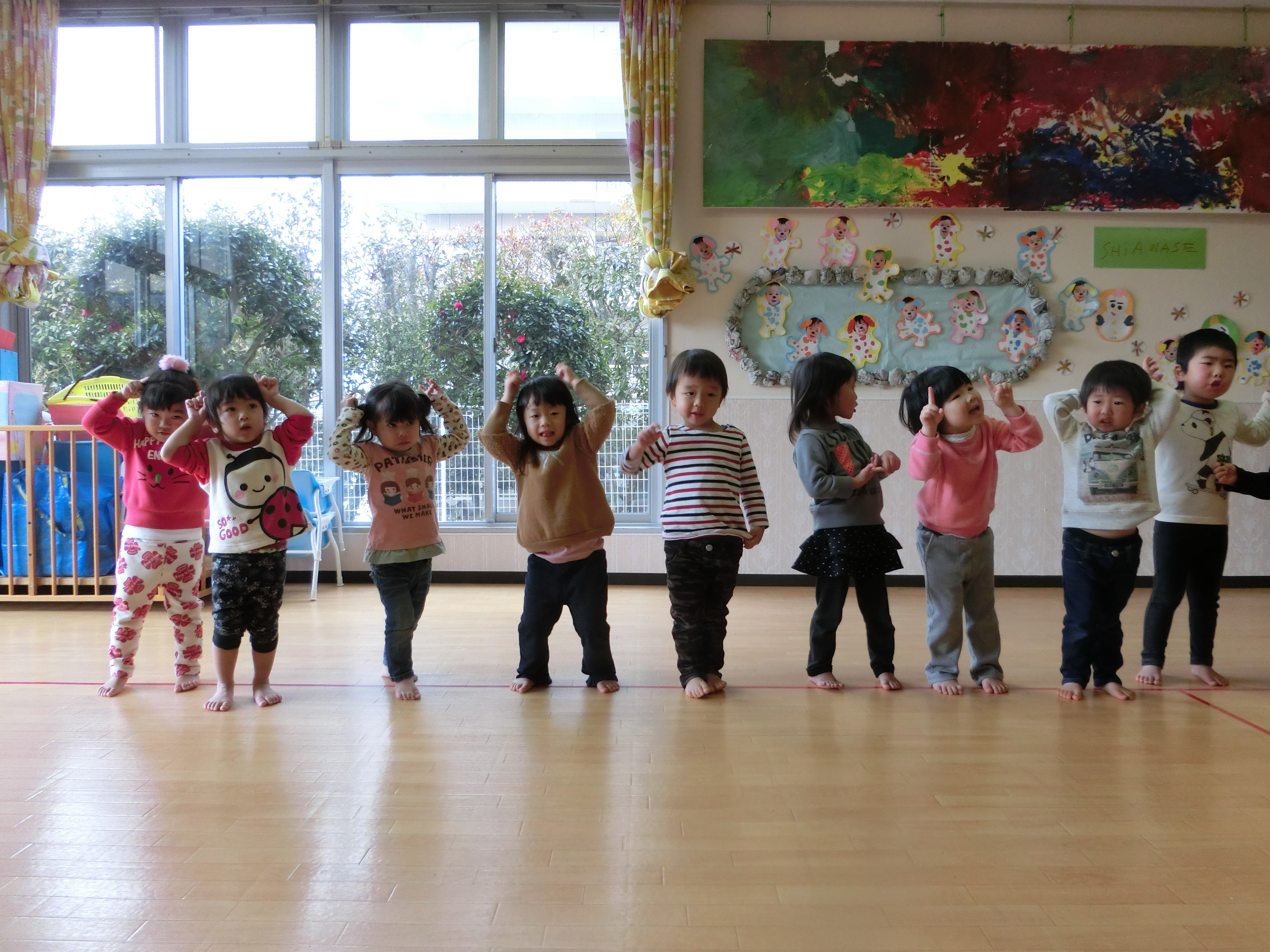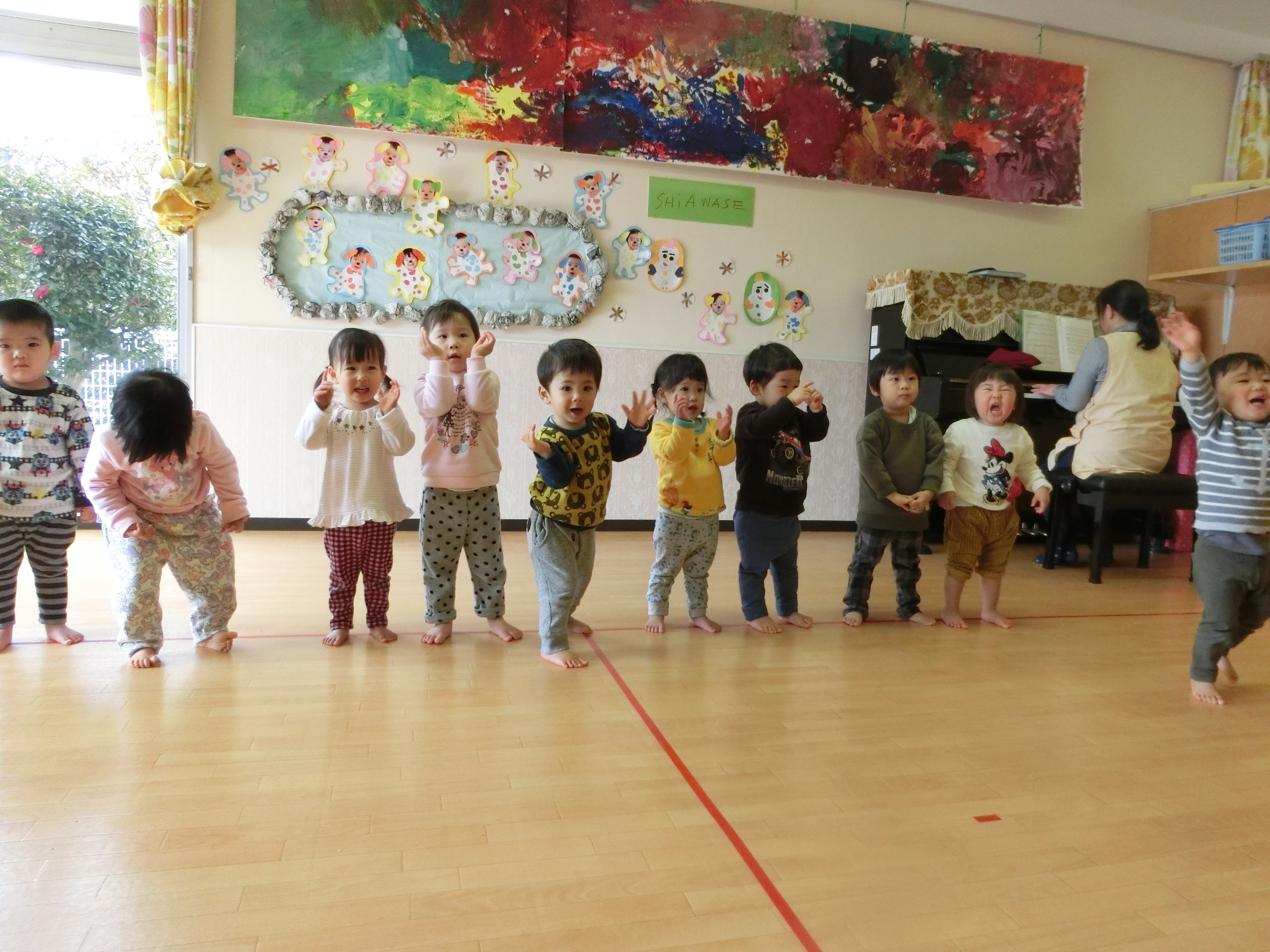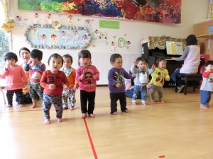 1歳児さんは、初めて全員が線に並んで発表することができました。
