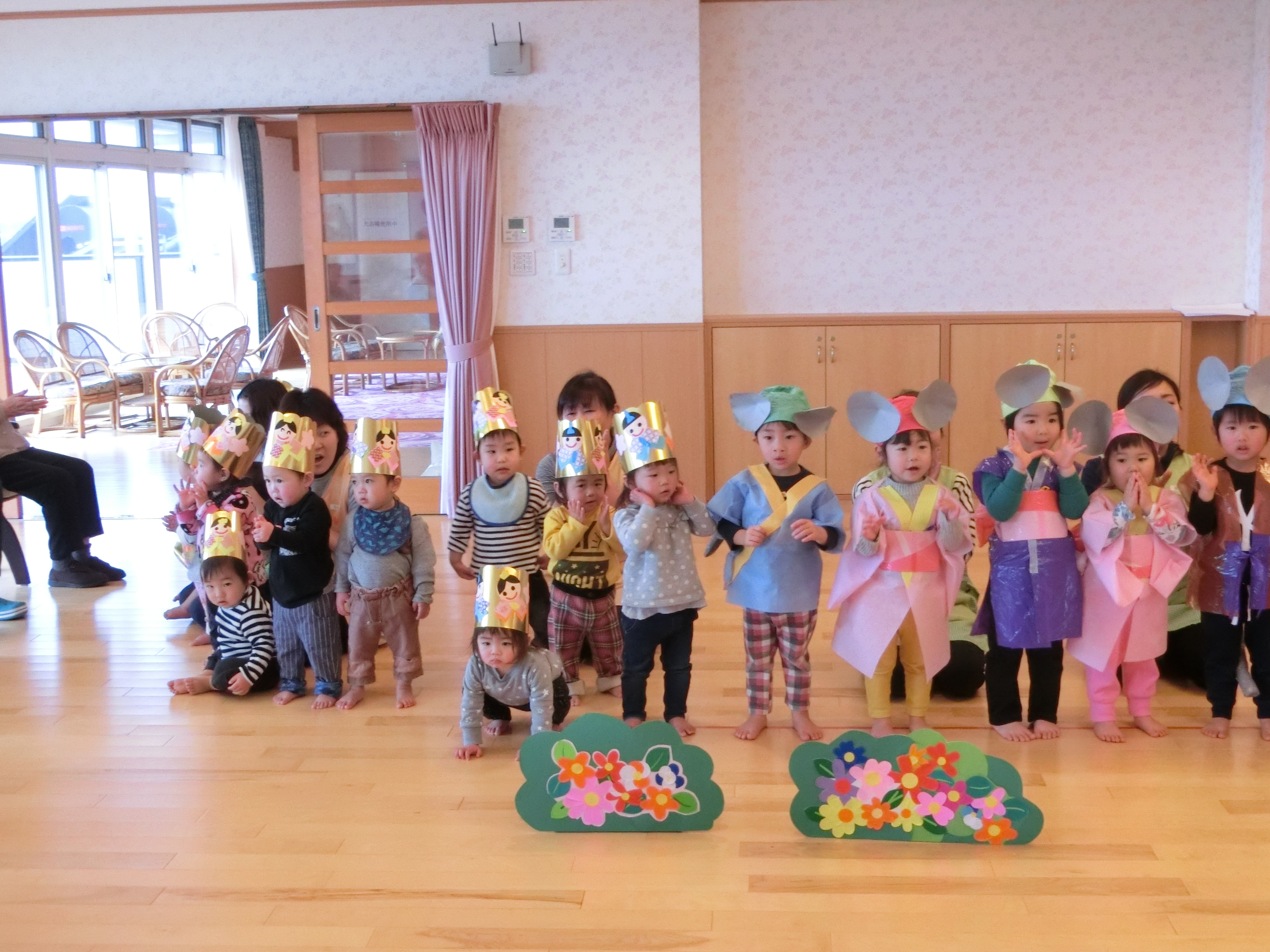 桃組も入場して元気に 「 はるをみーつけた 」 と 「 うれしいひなまつり 」