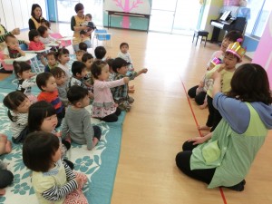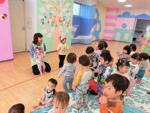 3歳になる青組の子は、みんなからの質問にもはっきりと答えることができ、