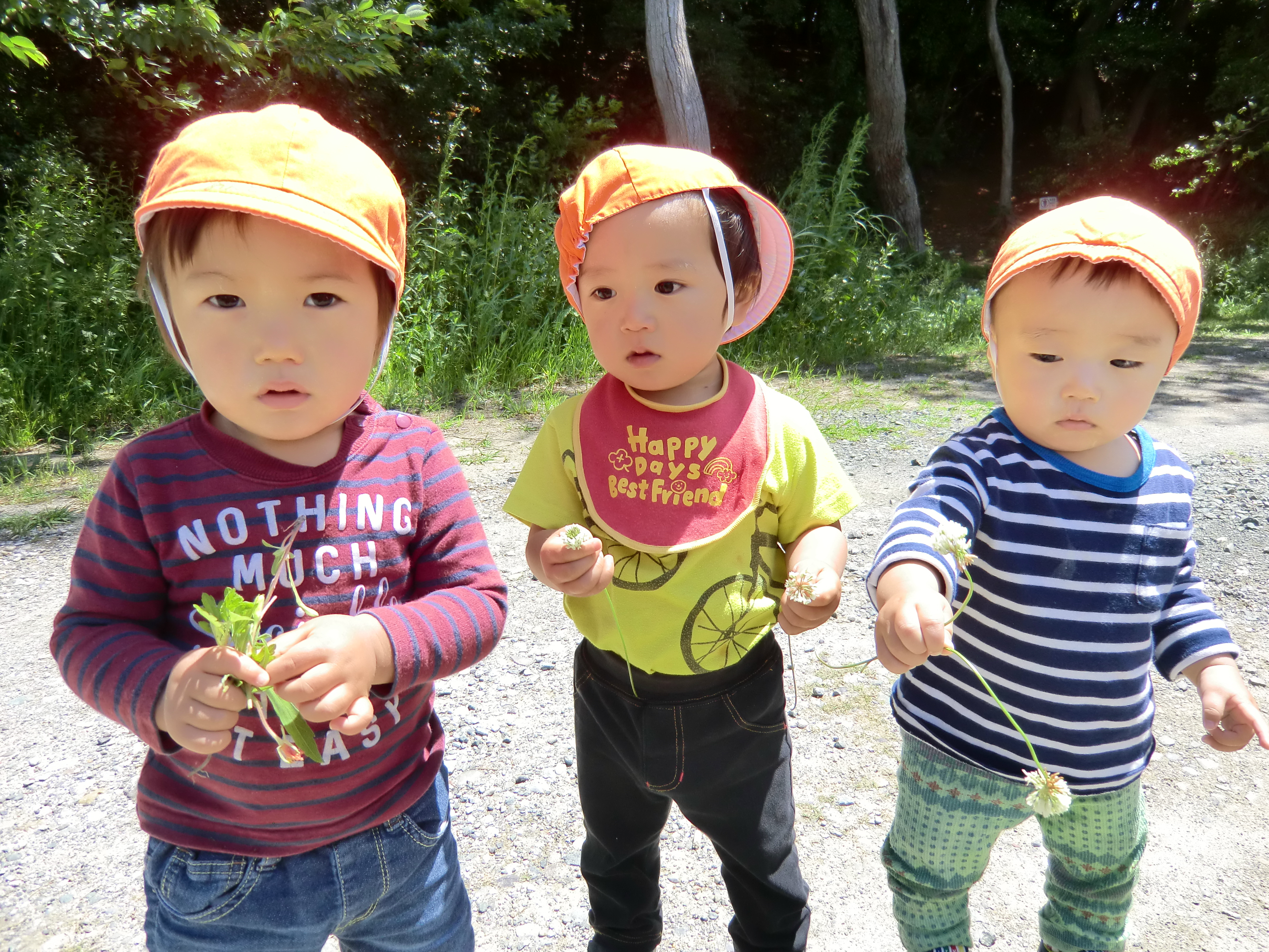 タンポポやシロツメクサを摘み花束のように持ったり