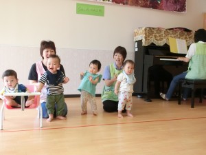 赤組は歌に合わせて手をたたいたり、楽しく参加していました。