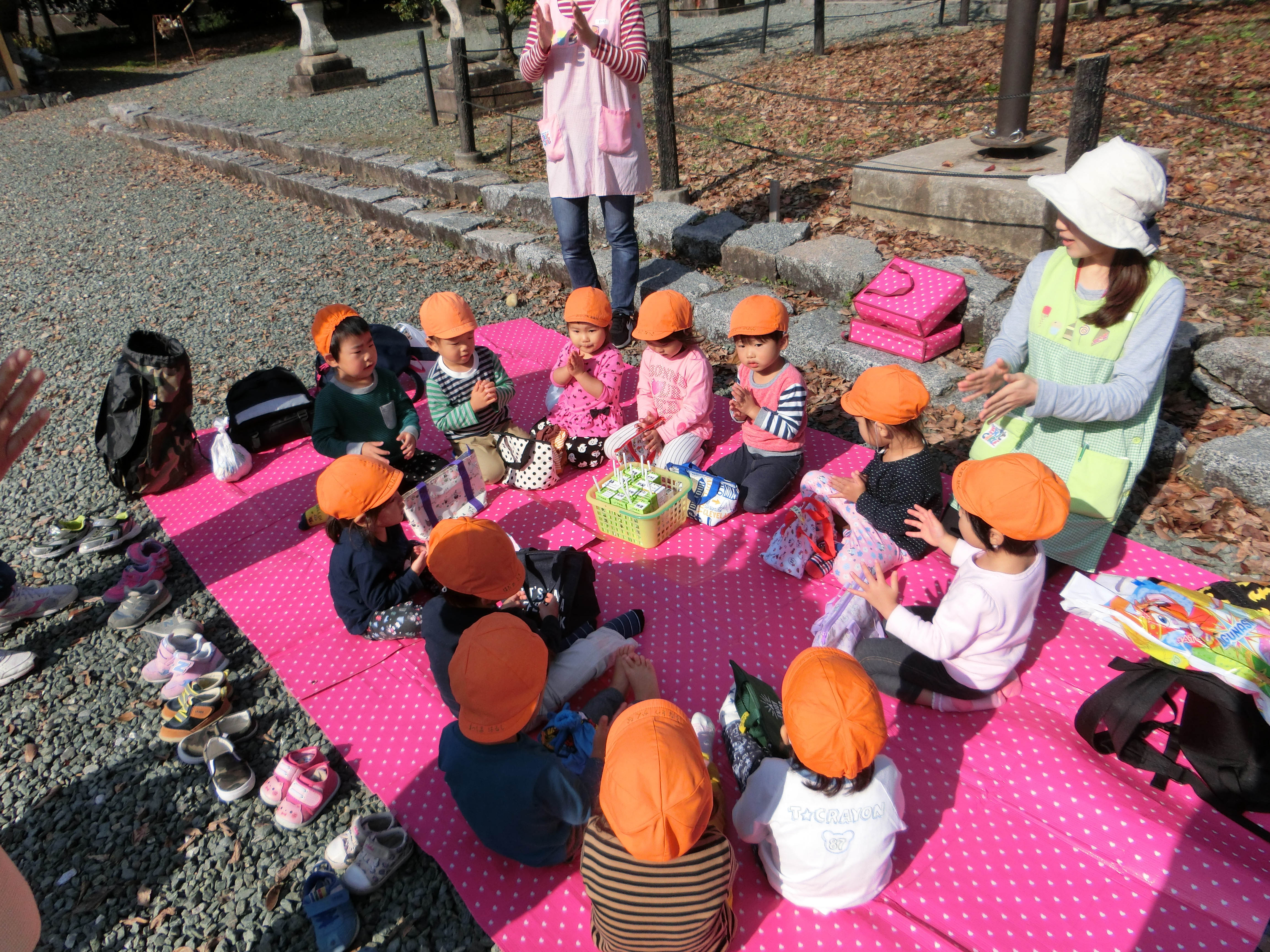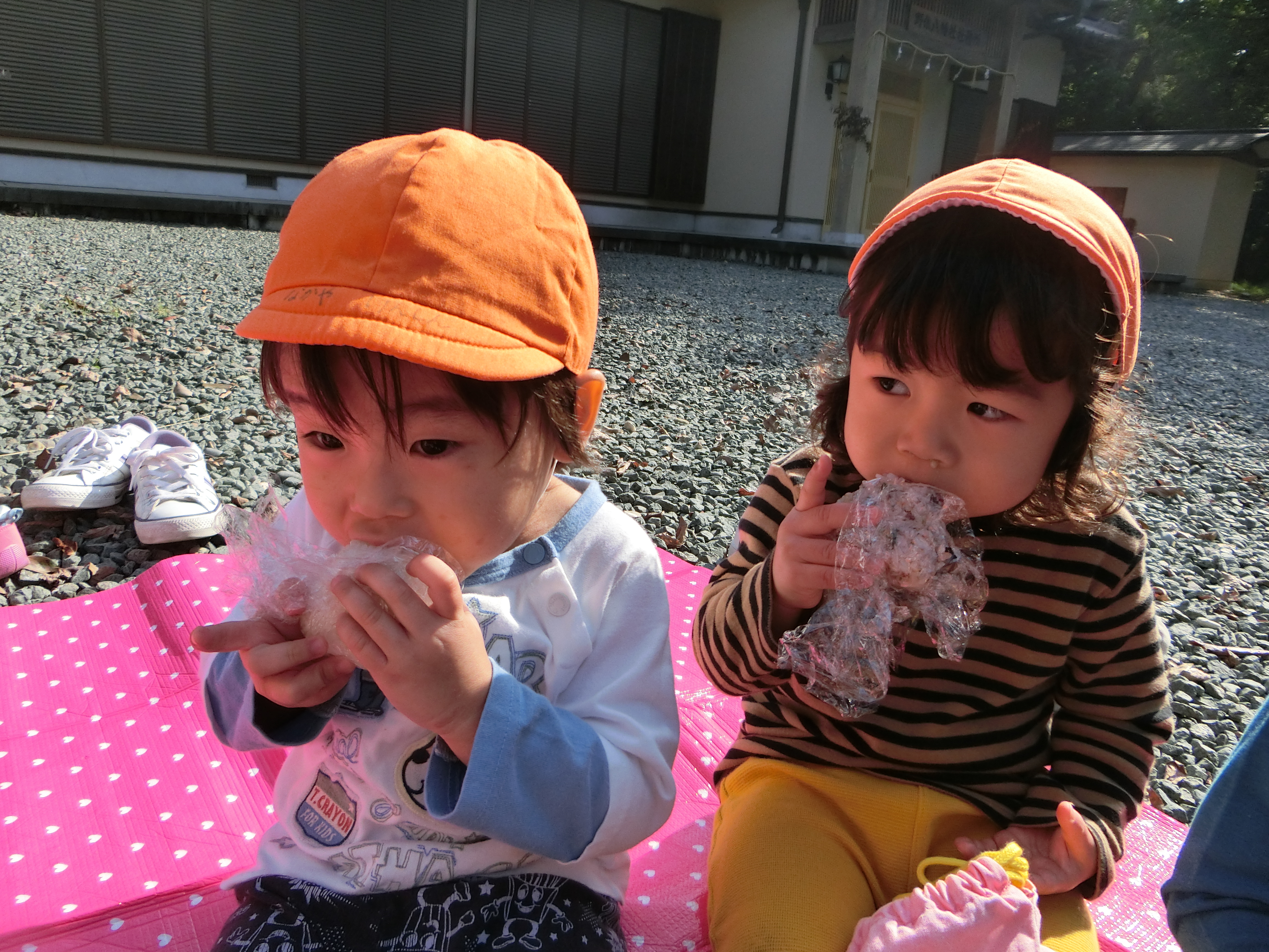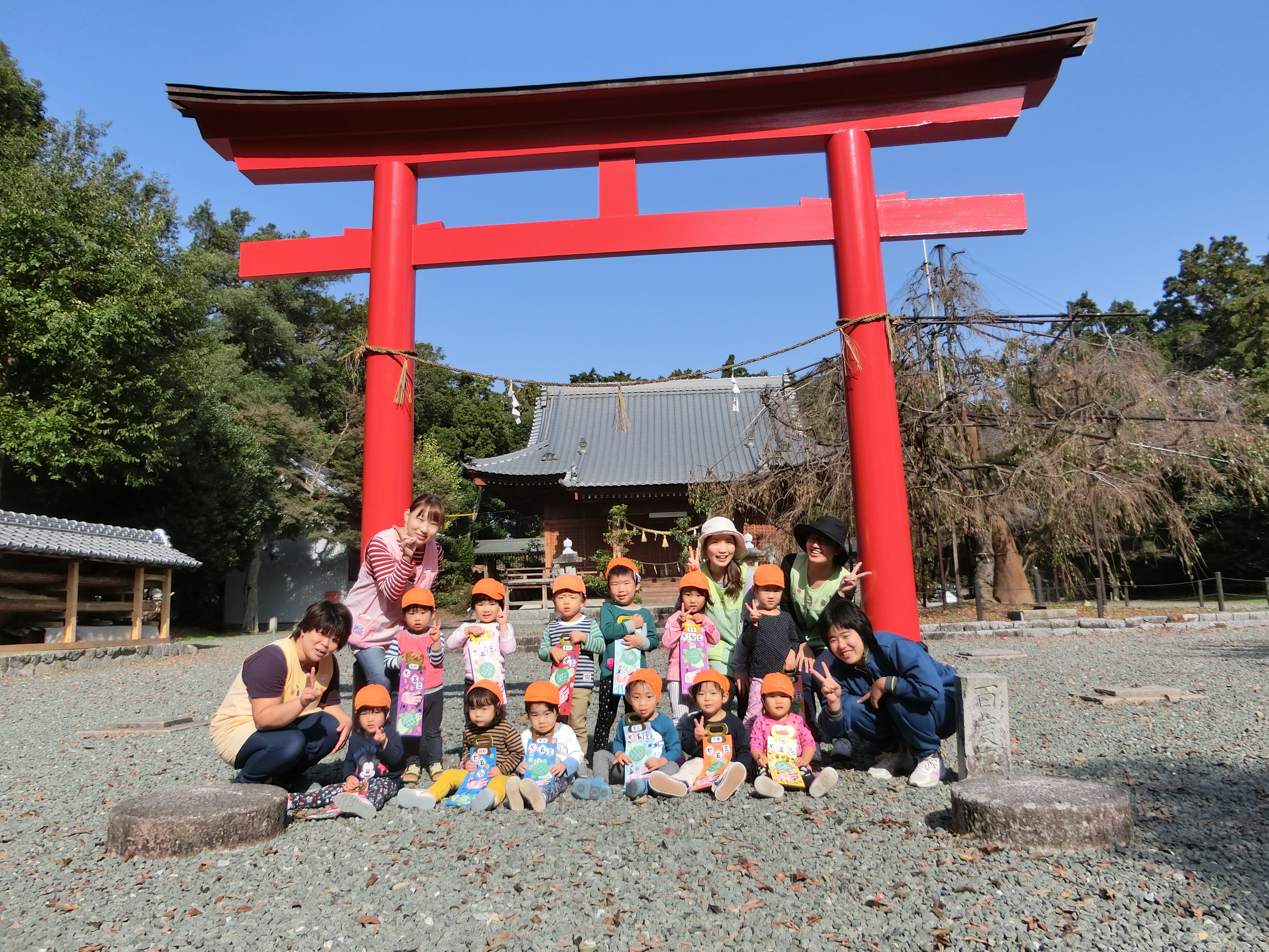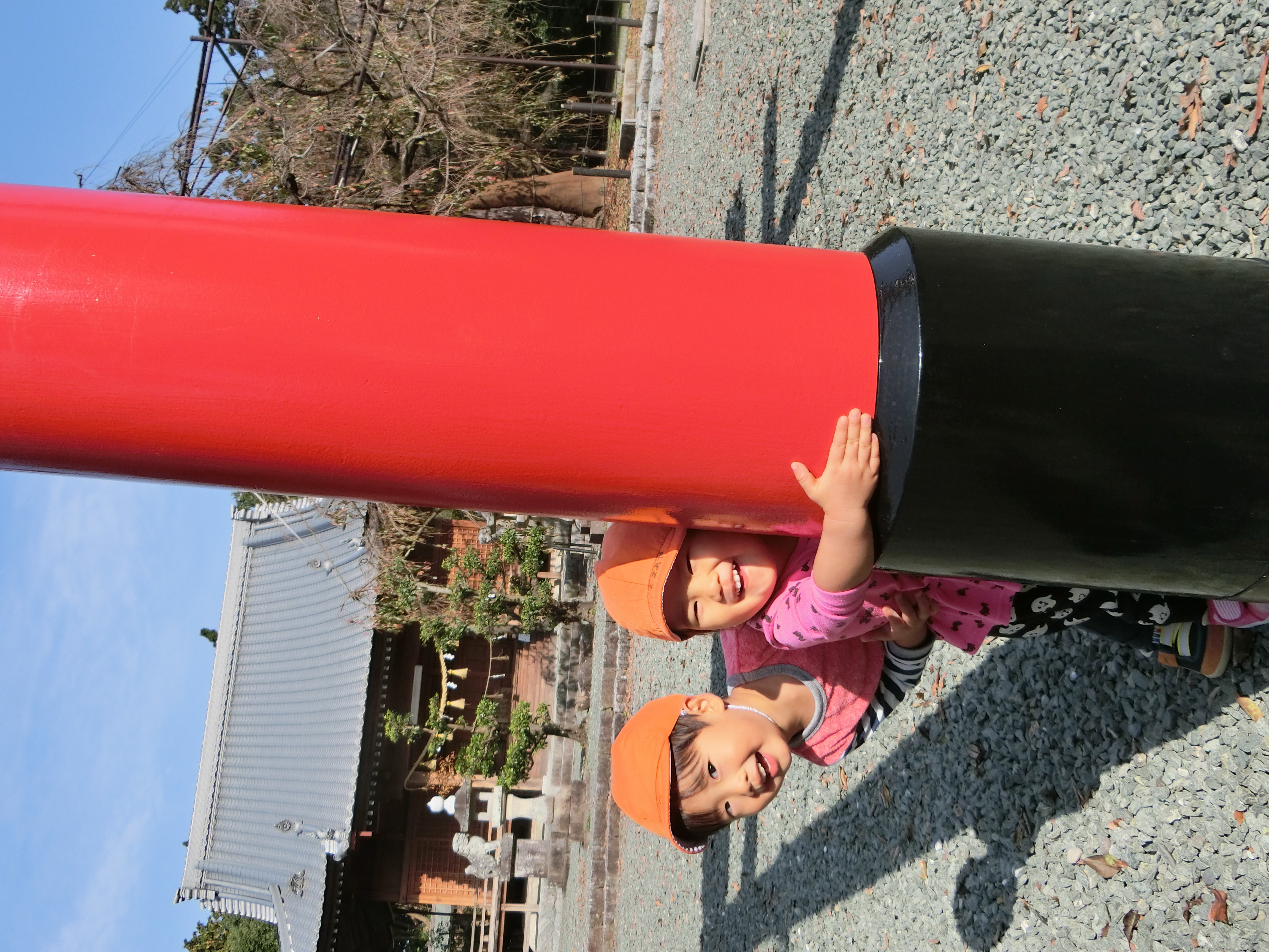 神社ではしっかりお詣りをし、境内でたっぷり遊んでから