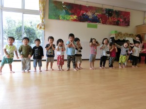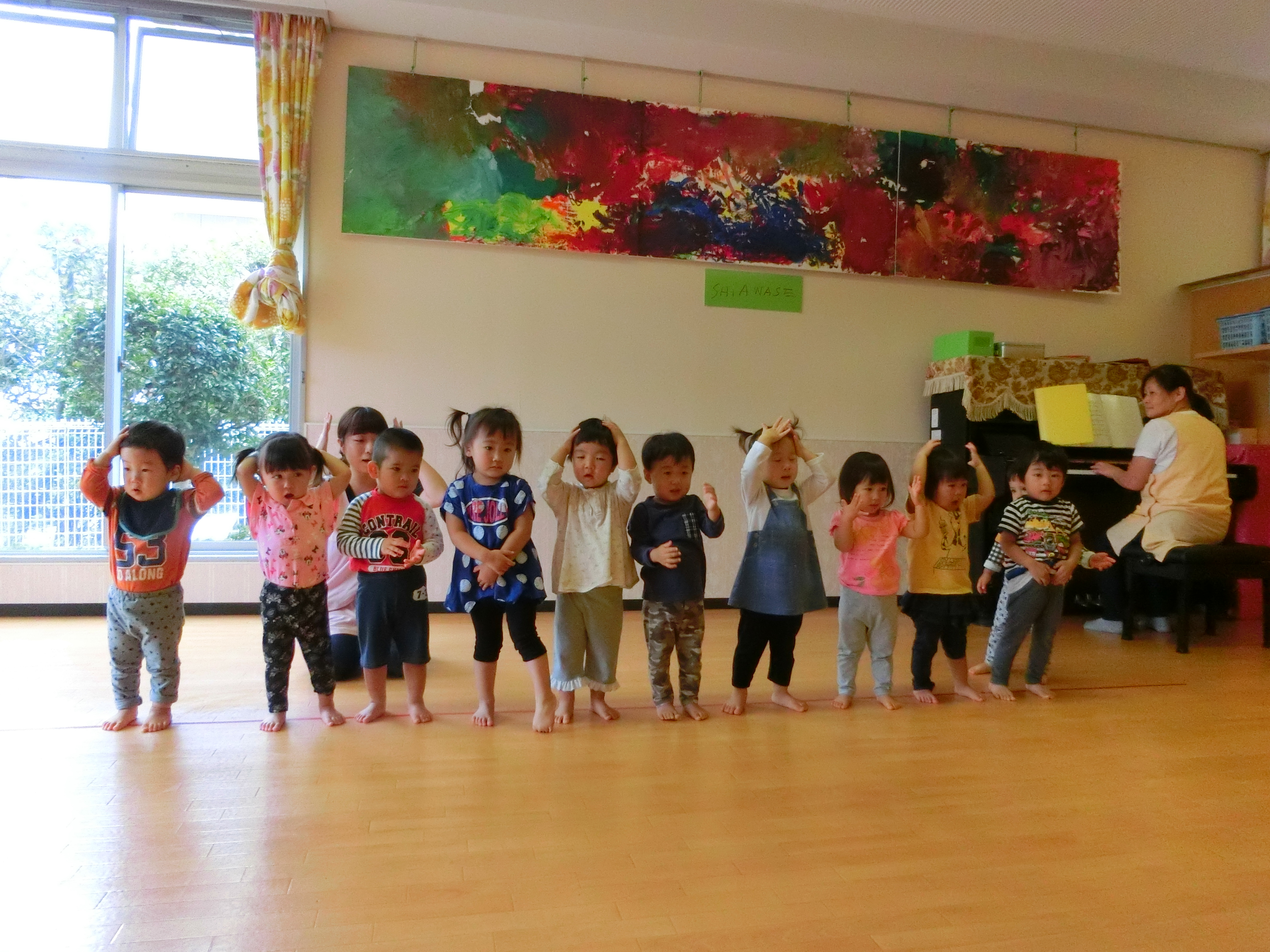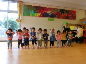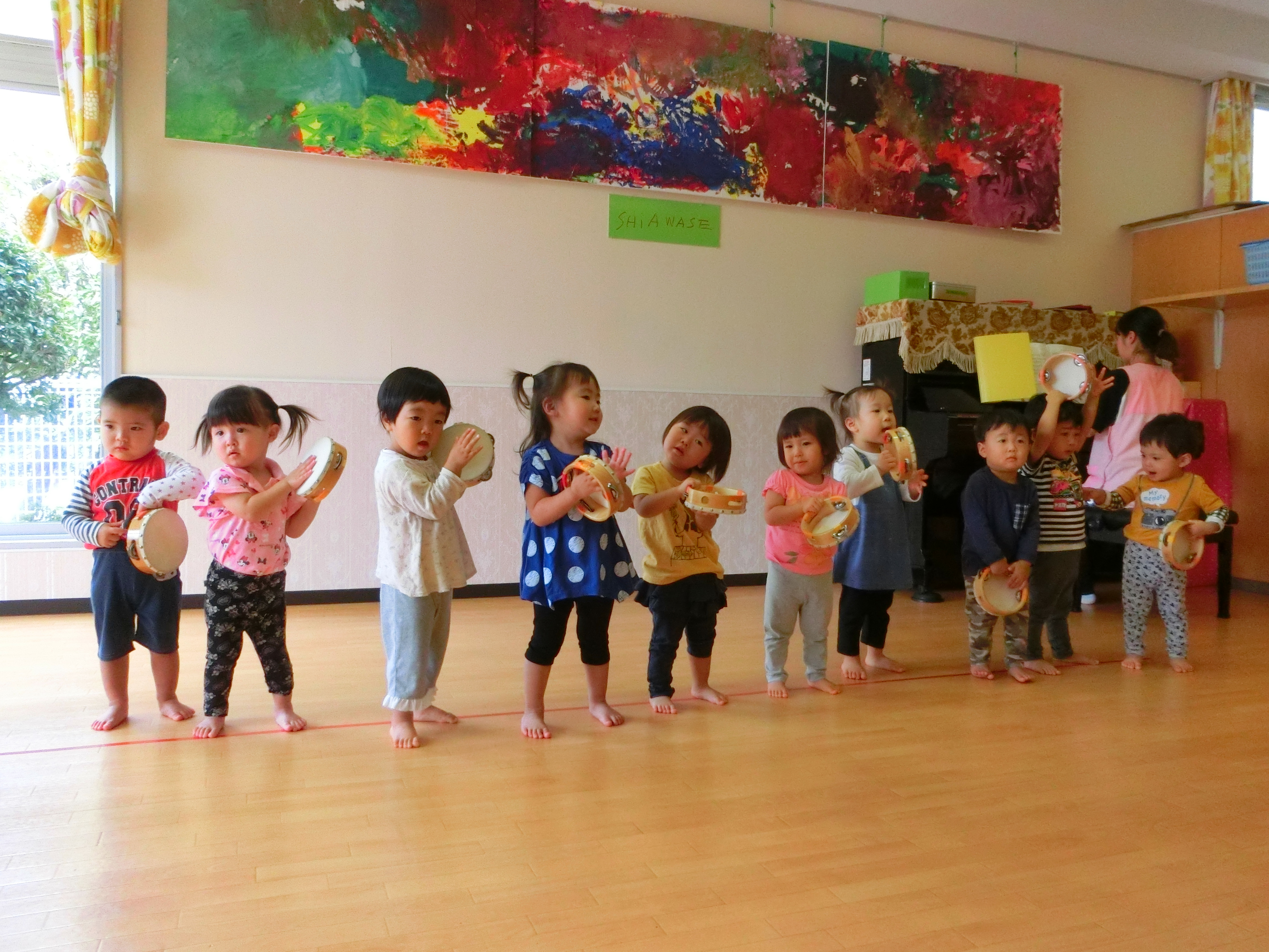 しっかりと線に並び、曲に合わせて踊ったり、上手にタンバリンの演奏ができました。