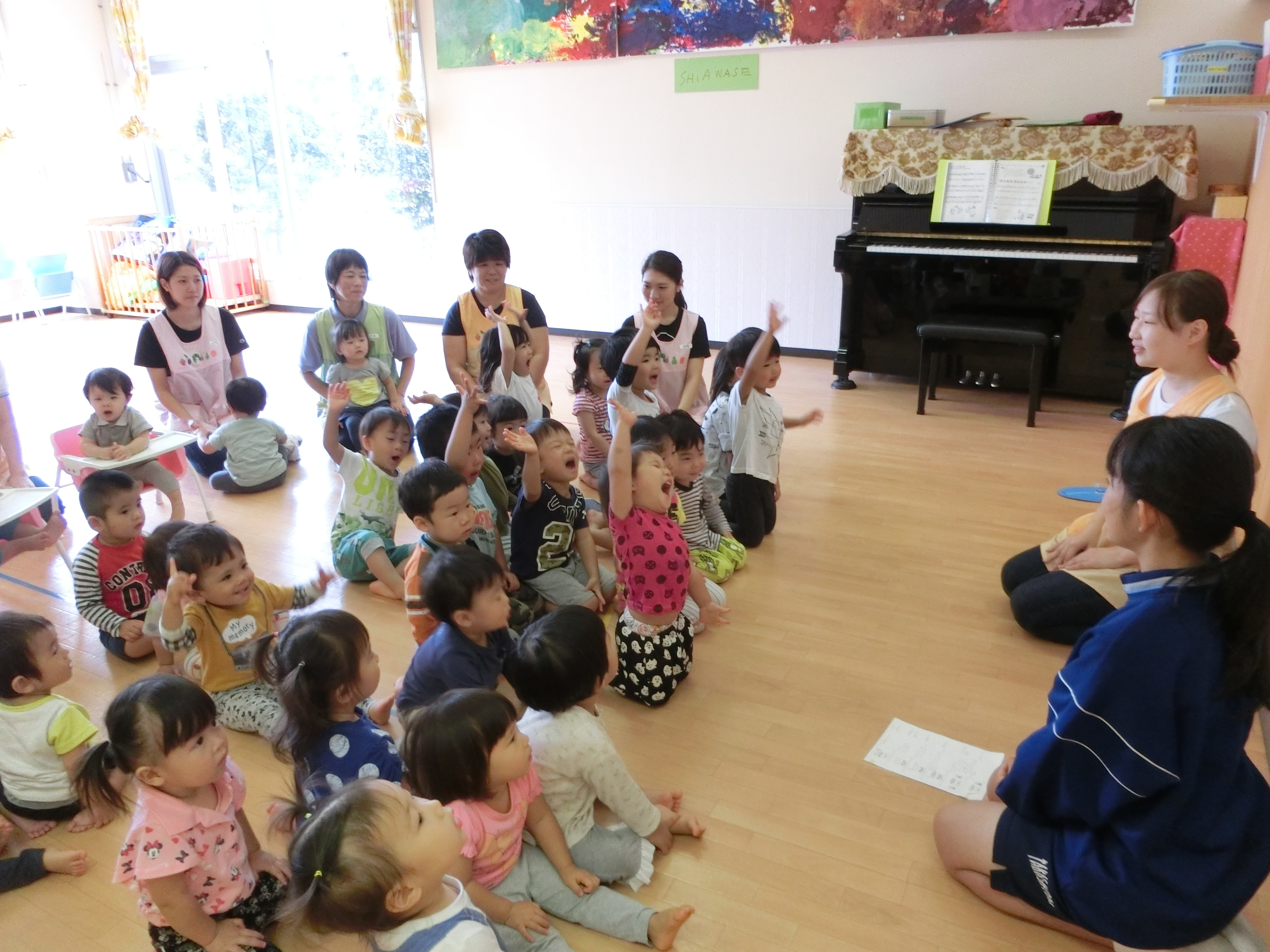 大きな口をあけて歌いながら、踊りやタンバリンの演奏もしっかりとできました。