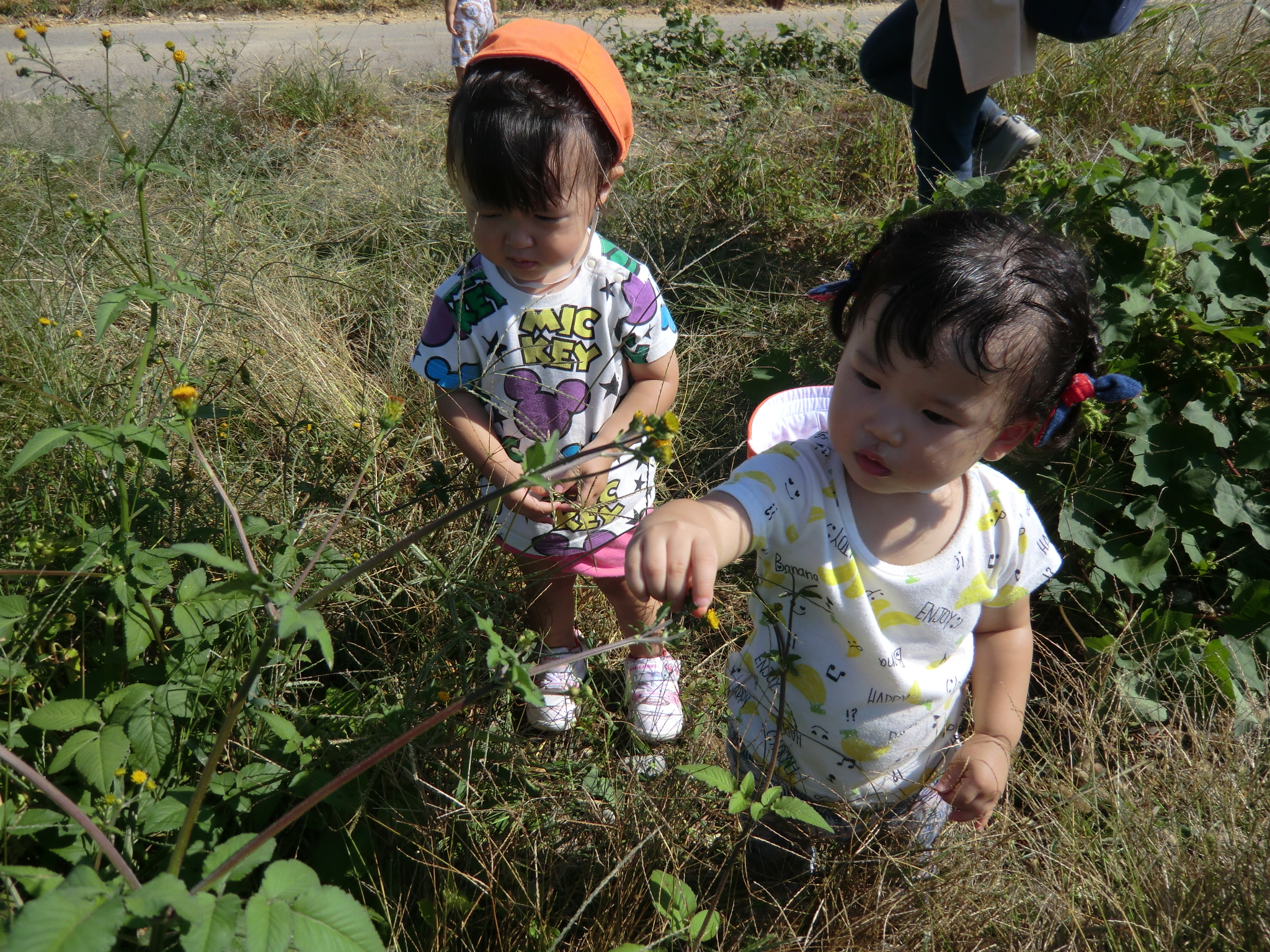 畑の近くには、いろいろな草花があり、