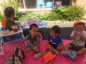 福祉村公園へ行き、少し遊んでからお庭でお弁当を食べました。