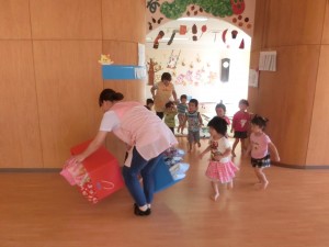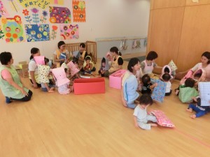 午睡後の時間に行い、まだ布団の上で寝転んでいる子もいましたが、